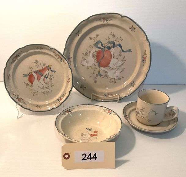 LOT 244 - International China 'Marmalade' Dinnerware - 6 Dinner Plates, 4 Salad Plates, 4 Cereal Bowls (3 Imperfect), 8 Cup & Saucers